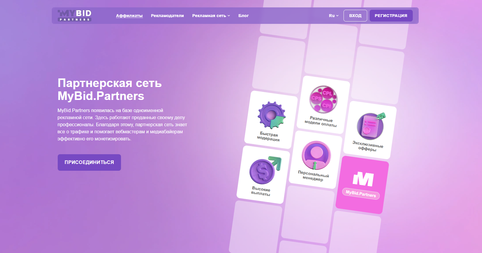 Выбор надежной CPA-сети играет ключевую роль для стабильного дохода. Вебмастерам и арбитражникам нужны платформы, где можно работать с разными вертикалями, получать качественный трафик и при этом спокойно отслеживать результаты и выплаты. Одной из таких партнерских сетей стала MyBid Partners — CPA-сеть, созданная опытной командой медиабаеров, которая знает, как превратить трафик в прибыль. В этом обзоре мы подробно разберем, как устроена сеть, какие инструменты доступны партнерам и чем она отличается от конкурентов.