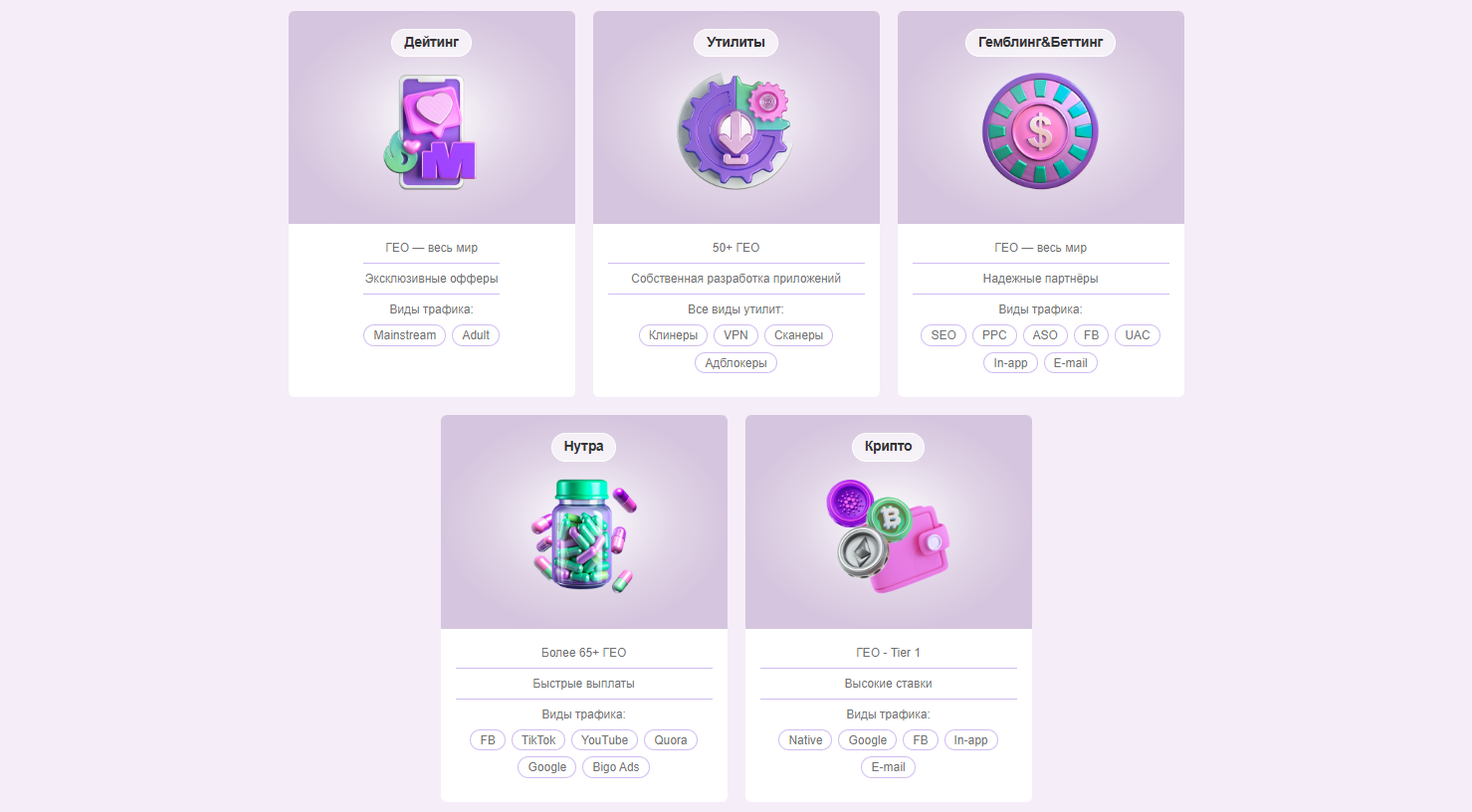 Под каждый оффер у партнерки собственный уникальный подход, обеспечивающий премиум-трафик из разных источников.