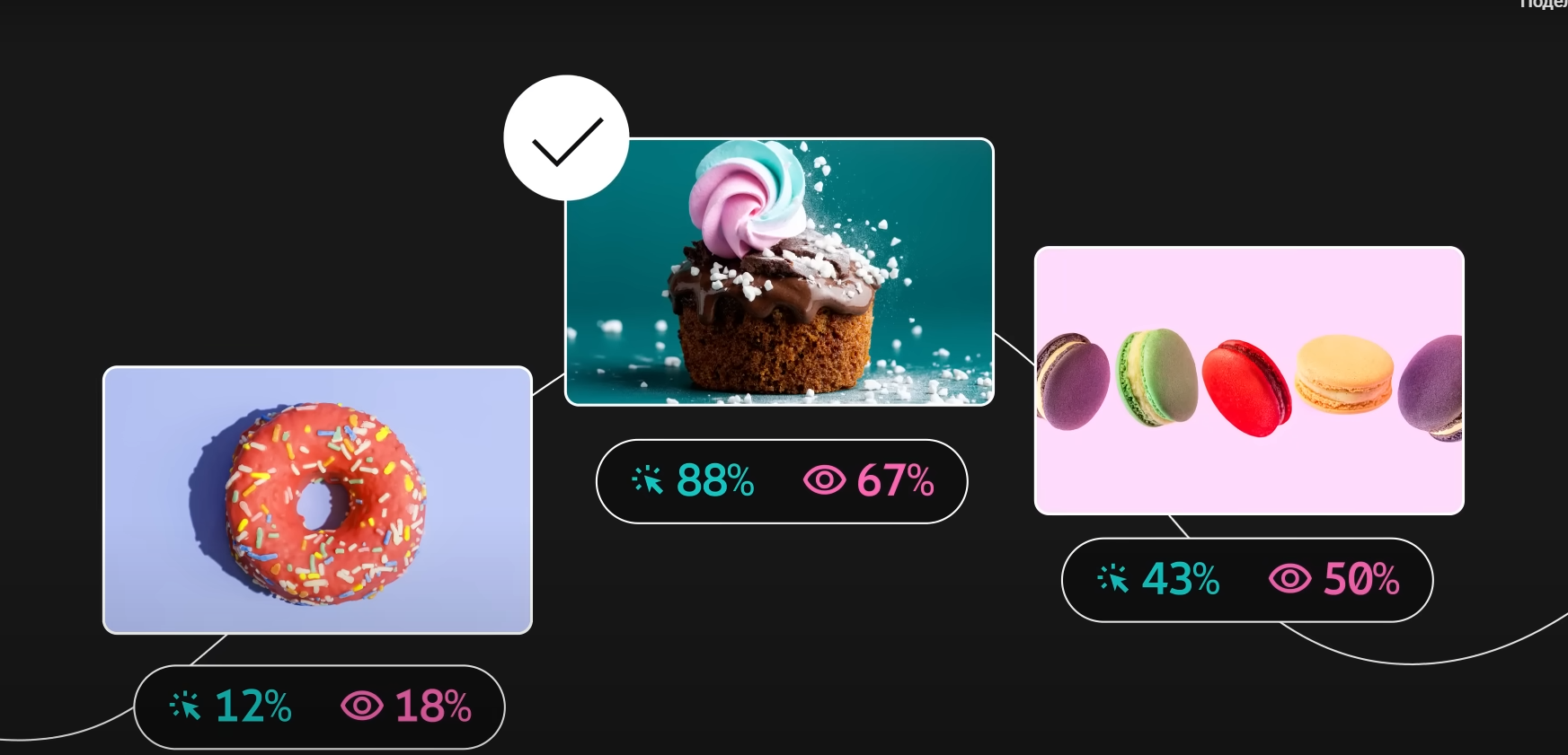 - Равная эффективность — ориентируйтесь на вторичные метрики: CTR и retention на 5 минут.